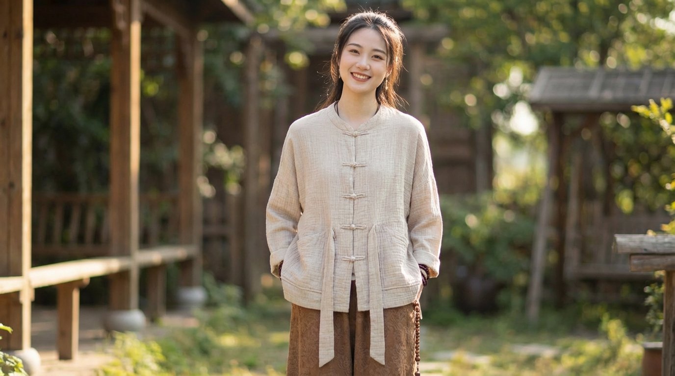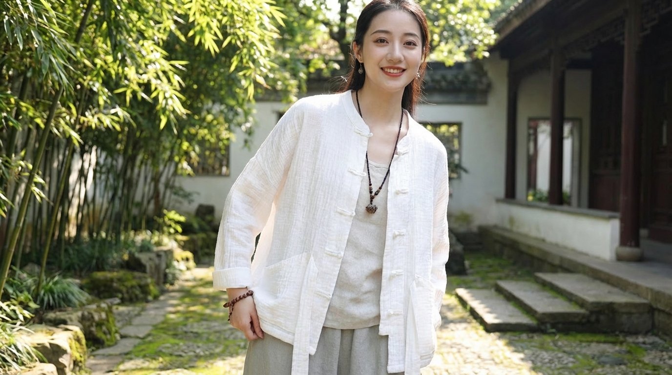Zen Silhouette: The Loose, Straight Cut creates a relaxed structure that doesn’t cling to the body, embodying the modest and comfortable “Tai Chi” aesthetic.