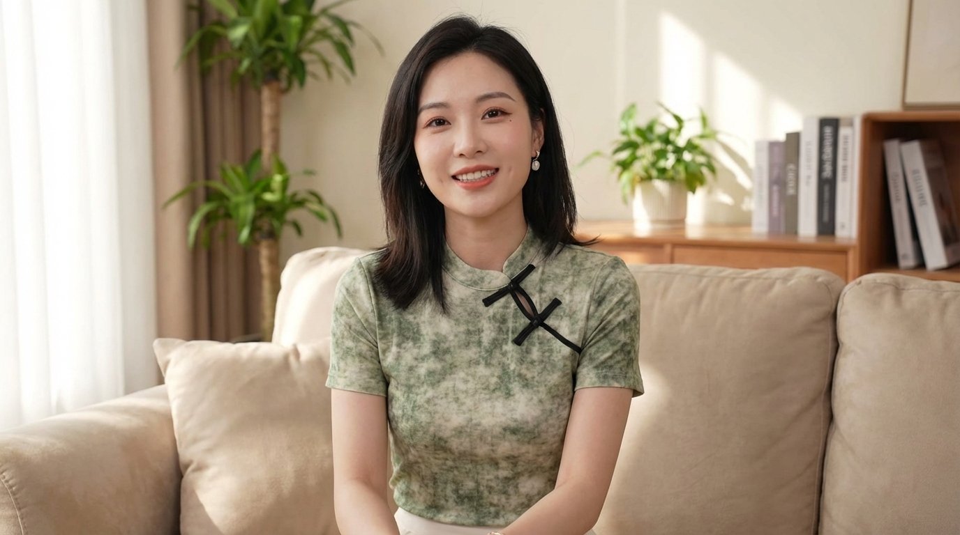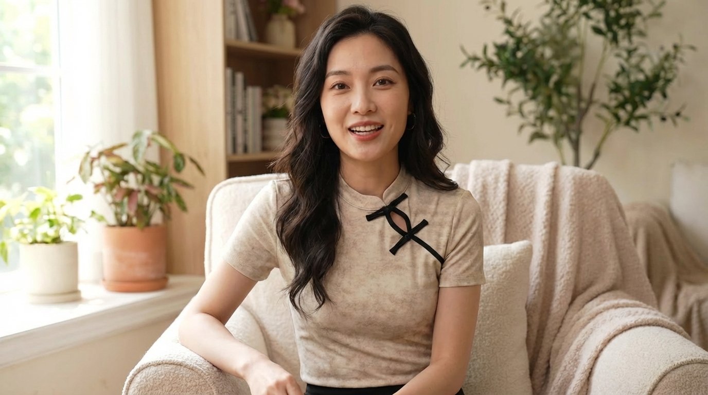 Artisan Details: The highlight is the Asymmetric Button Decoration, a modern nod to traditional “Pan-kou” knots, placed strategically to draw the eye and add a refined focal point to the simple round neck.