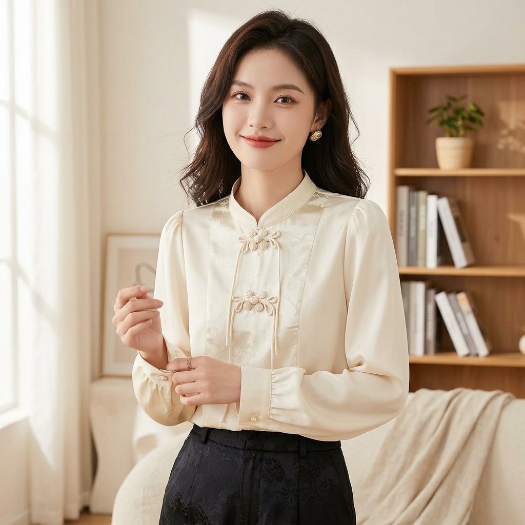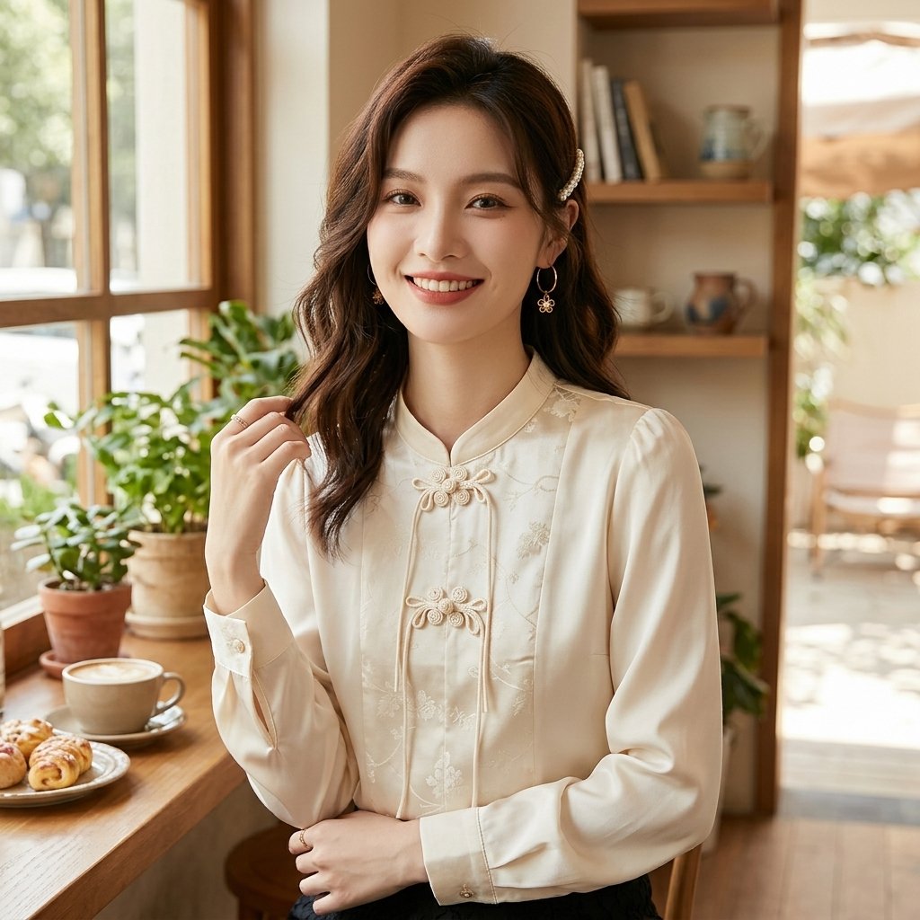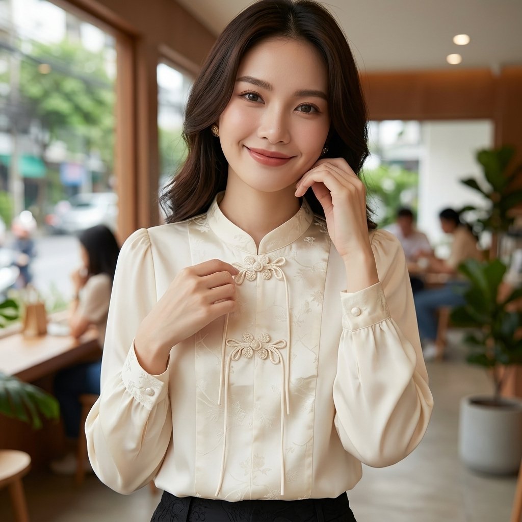 ๐Ÿงบ Design Inspiration: Pastoral Poetry Meets City Chic This blouse draws its inspiration from the romantic “Cottagecore” aesthetic and the polished elegance of modern Korean streetwear. It captures the essence of a peaceful countryside morning, translating that innocence into a versatile urban staple. The vintage-inspired Peter Pan collar and soft, voluminous sleeves evoke a sense of nostalgic femininity, designed for the modern woman who wants to bring a touch of fairytale grace to her everyday life.