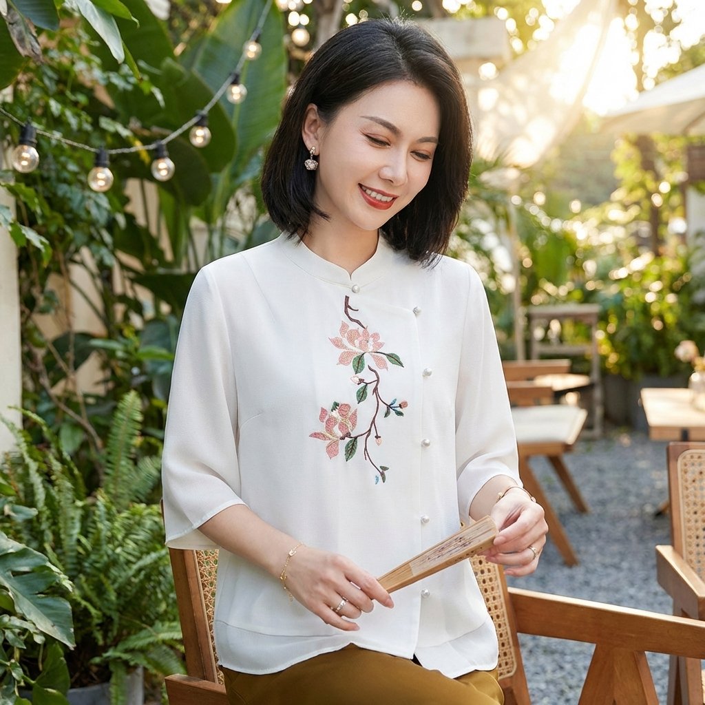 Exquisite Embellishments: Artfully detailed with delicate Embroidery and sparkling Rhinestone button accents, giving the top a premium, high-end finish.